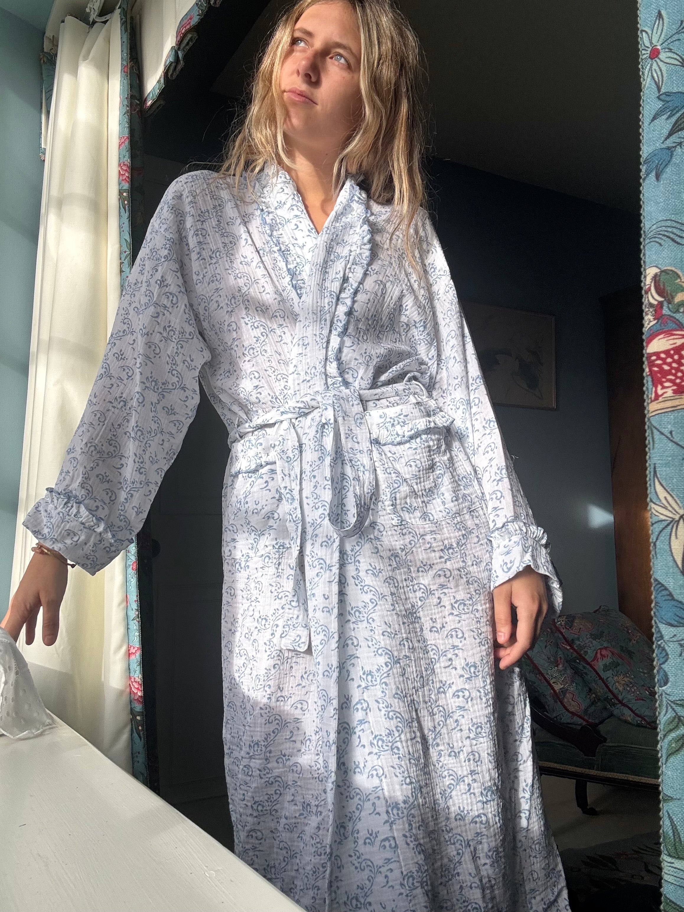 Paisley Blue Muslin Dressing Gown